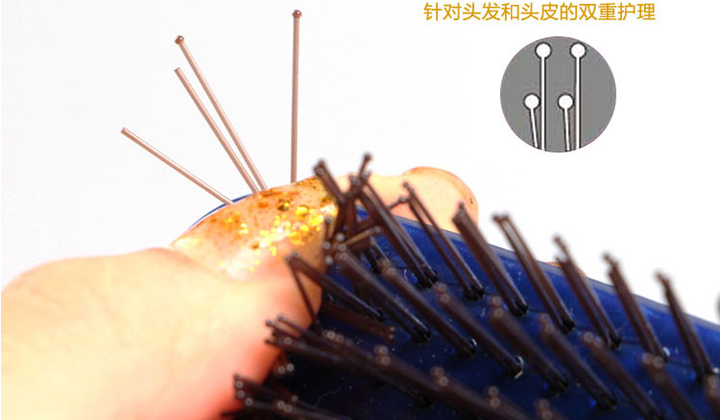 4、梳齒末端獨特小圓頭設(shè)計,不傷頭皮,促進頭部皮層血液循環(huán),暢通經(jīng)脈。